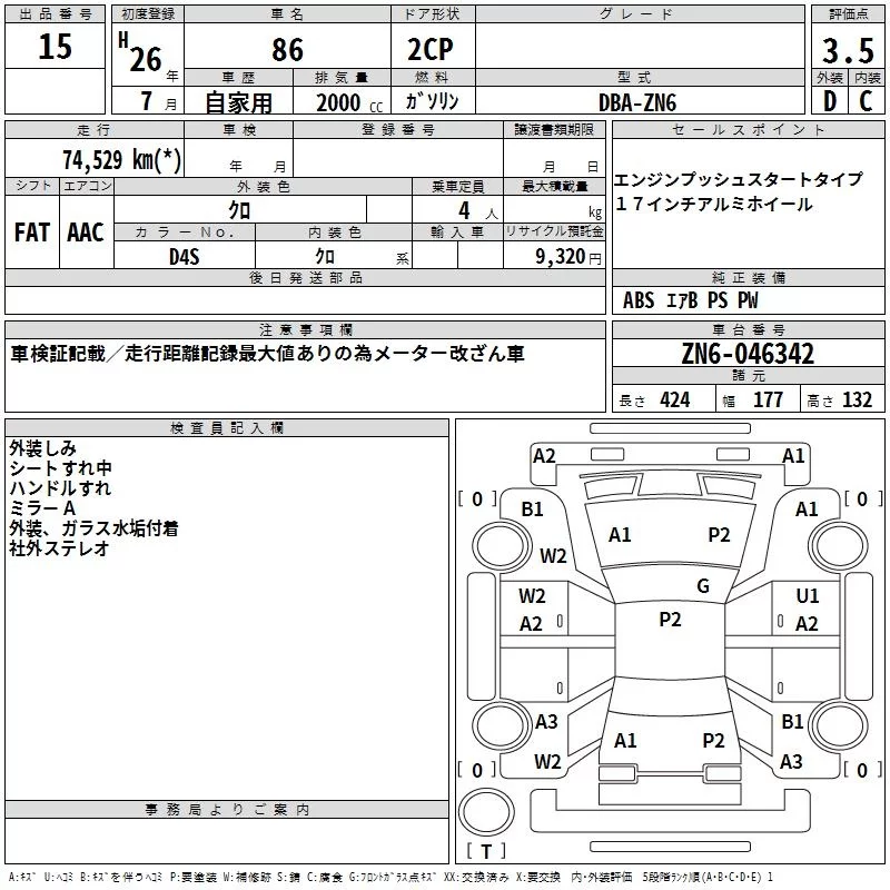 Toyota GT 86 с аукциона Японии TAA Minami Kyushu лот № 15