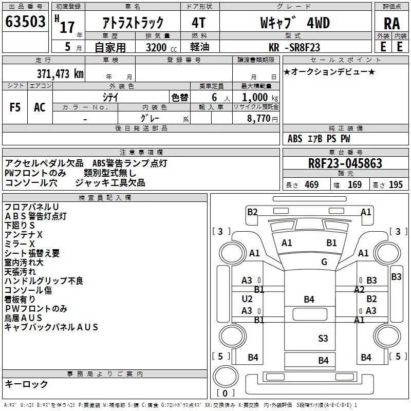Nissan ATLAS с аукциона Японии TAA Minami Kyushu лот № 63503