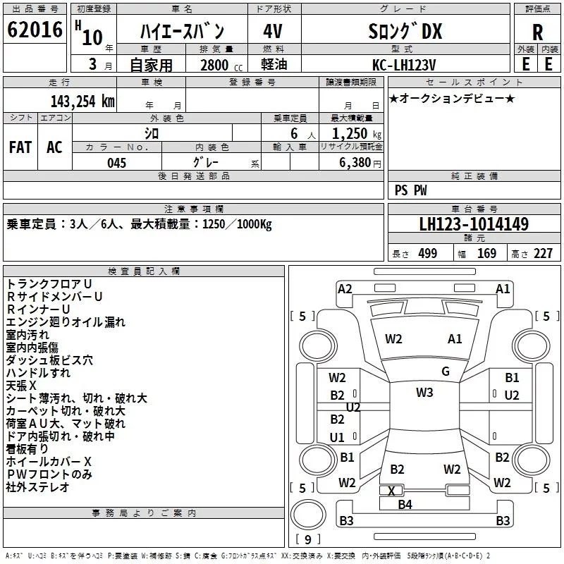 Аукционный лист  HIACE VAN лот № 62016