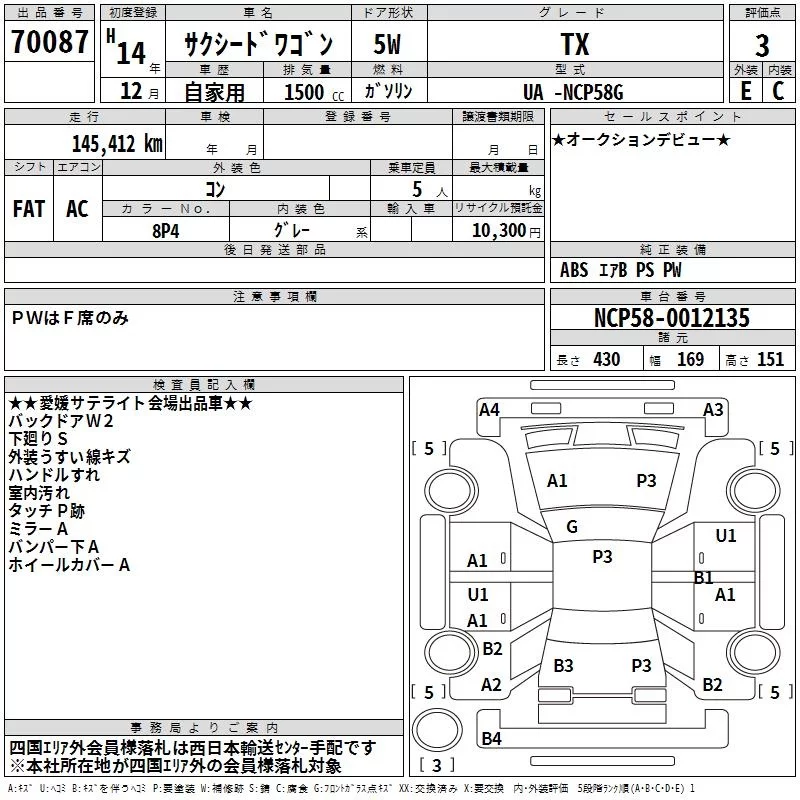 Toyota SUCCEED с аукциона Японии TAA Shikoku лот № 70087