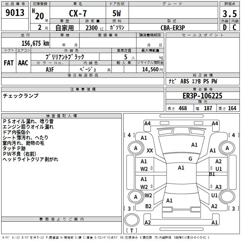 Mazda CX-7 с аукциона Японии TAA Shikoku лот № 9013