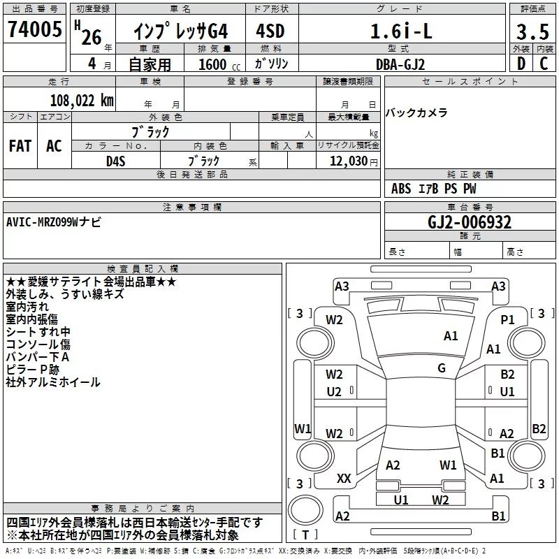 Subaru IMPREZA G4 с аукциона Японии TAA Shikoku лот № 74005