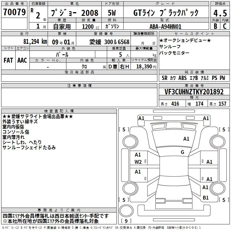 Peugeot 2008 с аукциона Японии TAA Shikoku лот № 70079