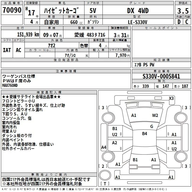 Daihatsu HIJET VAN с аукциона Японии TAA Shikoku лот № 70090