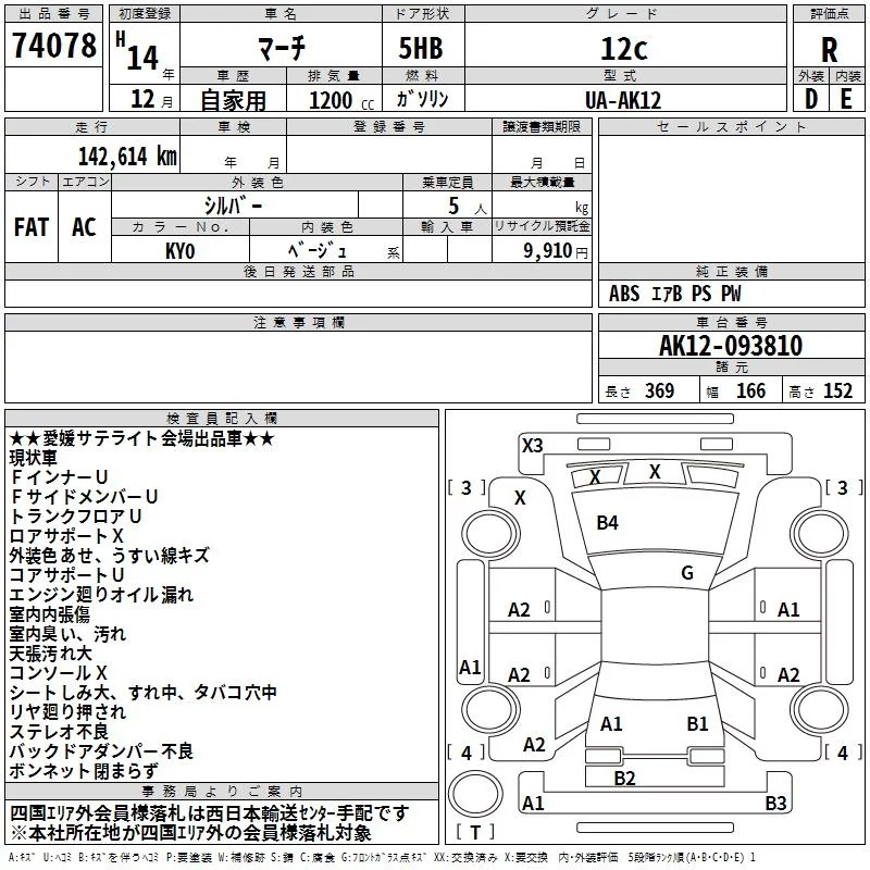 Nissan MARCH с аукциона Японии TAA Shikoku лот № 74078