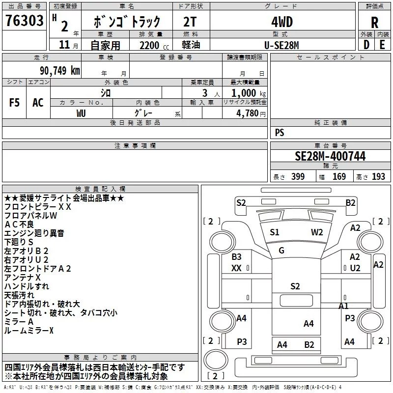 Mazda BONGO с аукциона Японии TAA Shikoku лот № 76303