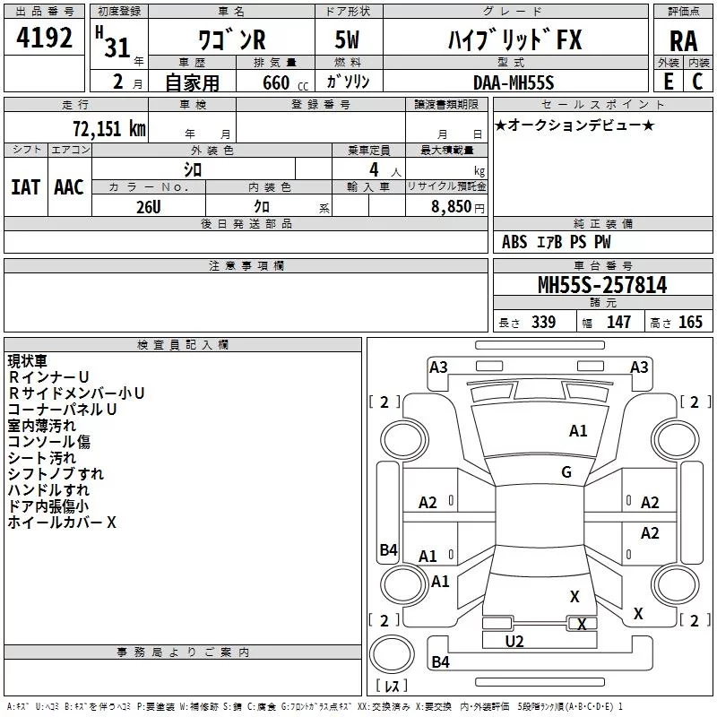 Suzuki WAGON R с аукциона Японии TAA Shikoku лот № 4192