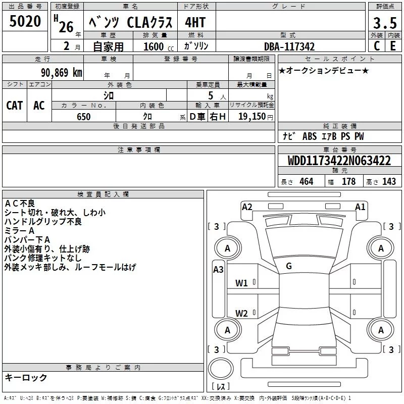 Mercedes-Benz CLA CLASS с аукциона Японии TAA Shikoku лот № 5020