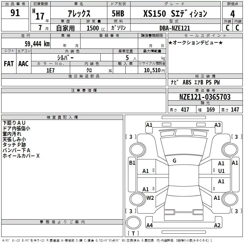 Toyota ALLEX с аукциона Японии TAA Shikoku лот № 91