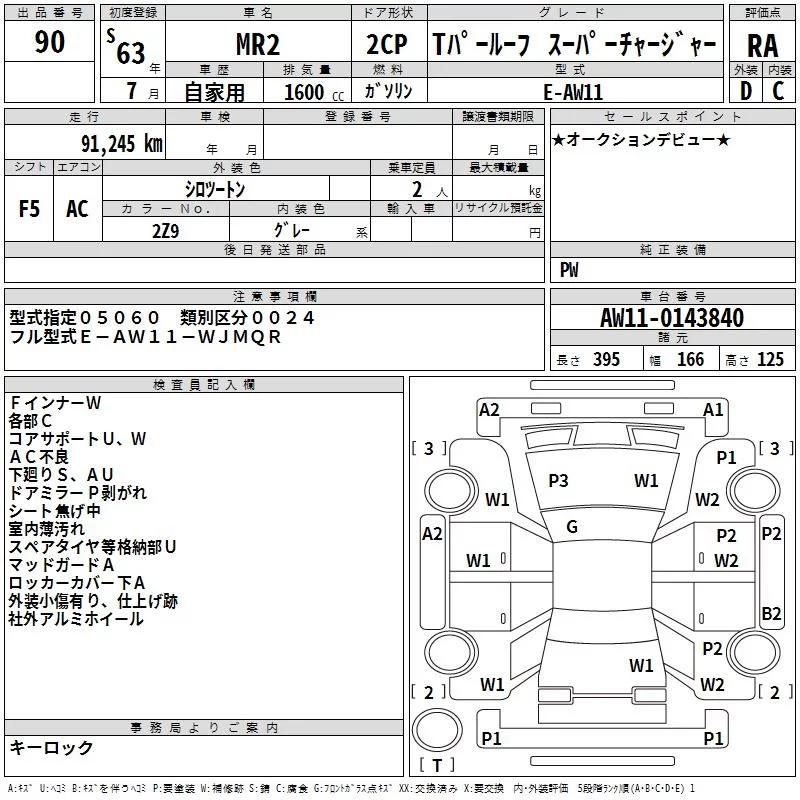 Toyota MR2 с аукциона Японии TAA Shikoku лот № 90