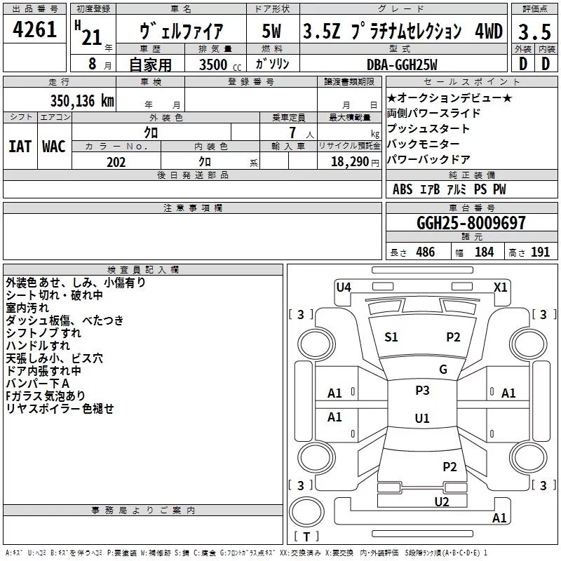 Toyota VELLFIRE с аукциона Японии TAA Shikoku лот № 4261