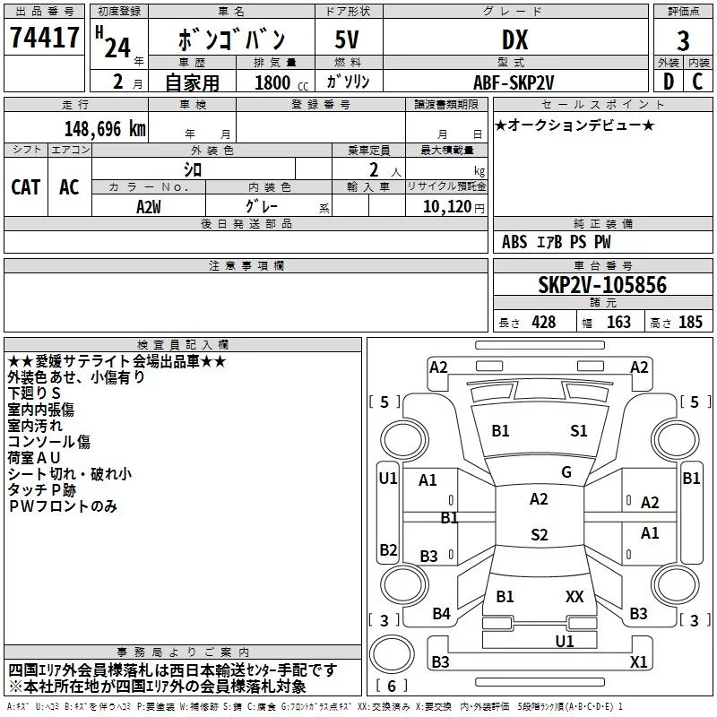 Mazda BONGO VAN с аукциона Японии TAA Shikoku лот № 74417