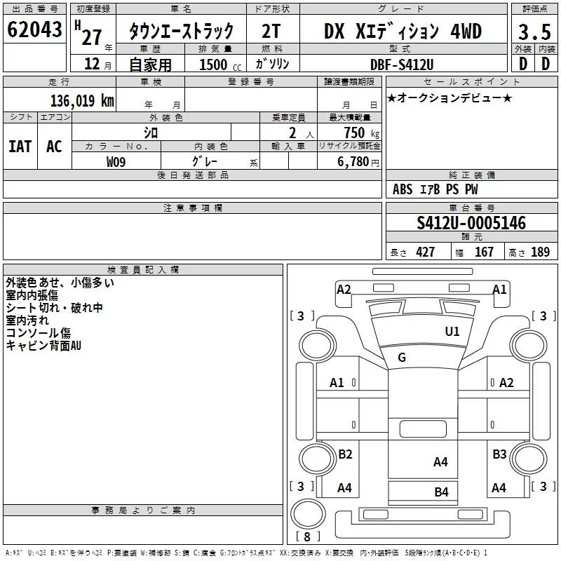 Toyota TOWN ACE TRUCK с аукциона Японии TAA Kinki лот № 62043