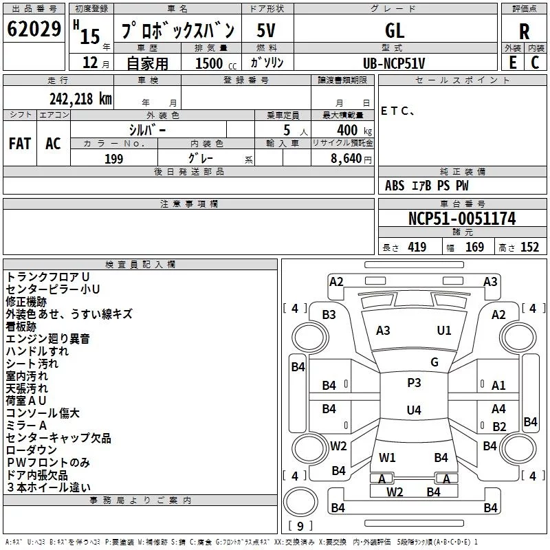 Toyota PROBOX с аукциона Японии TAA Kinki лот № 62029