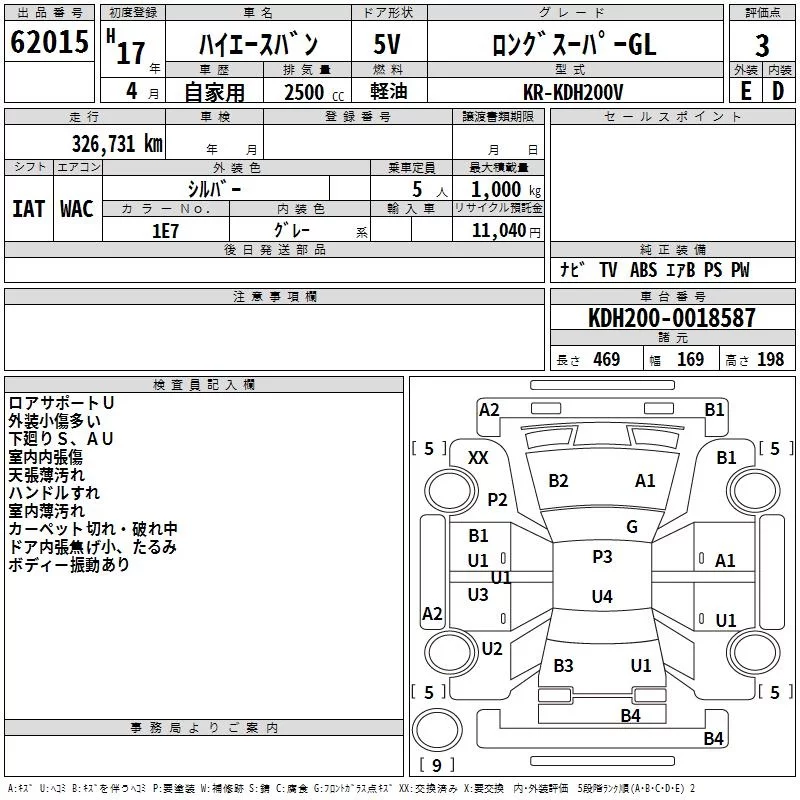 Toyota HIACE VAN с аукциона Японии TAA Kinki лот № 62015