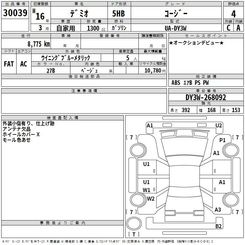 Mazda DEMIO с аукциона Японии TAA Kinki лот № 30039