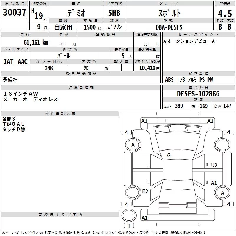 Mazda DEMIO с аукциона Японии TAA Kinki лот № 30037