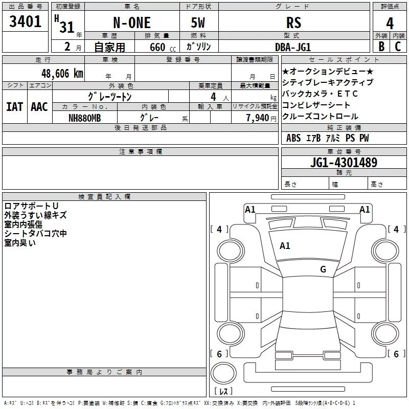 Honda N ONE с аукциона Японии TAA Kinki лот № 3401