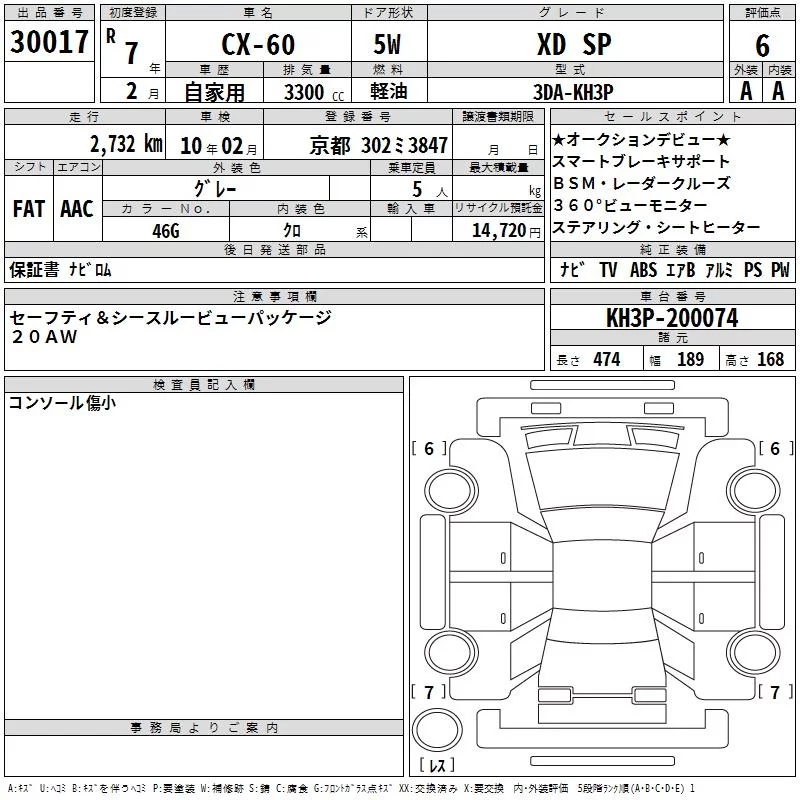 Mazda CX-60 с аукциона Японии TAA Kinki лот № 30017