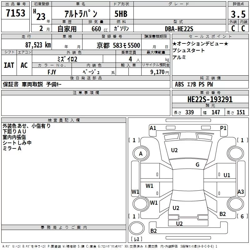 Suzuki ALTO LAPIN с аукциона Японии TAA Kinki лот № 7153