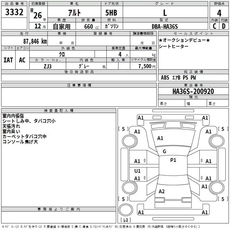 Suzuki ALTO с аукциона Японии TAA Kinki лот № 3332