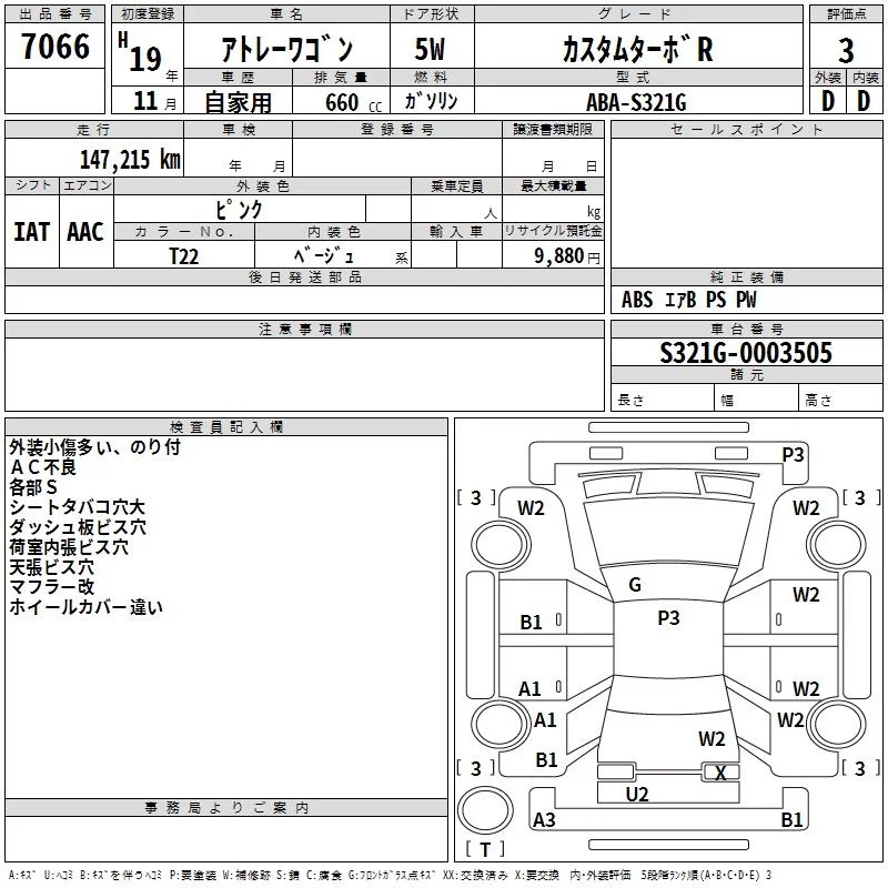 Daihatsu Atrai Wagon с аукциона Японии TAA Kinki лот № 7066