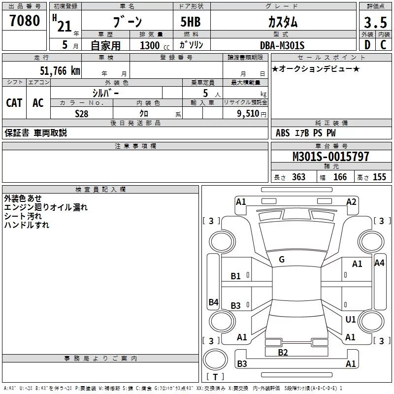 Daihatsu Boon с аукциона Японии TAA Kinki лот № 7080