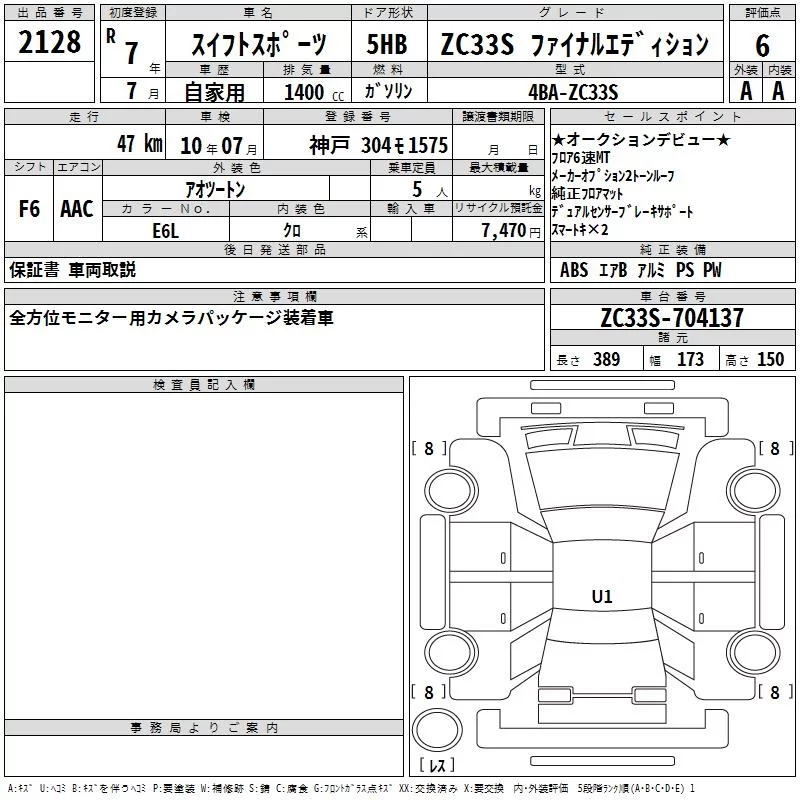 Suzuki SWIFT с аукциона Японии TAA Kinki лот № 2128