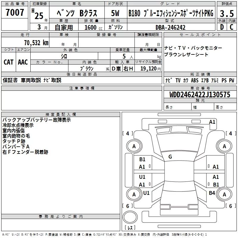 Mercedes-Benz B CLASS с аукциона Японии TAA Kinki лот № 7007