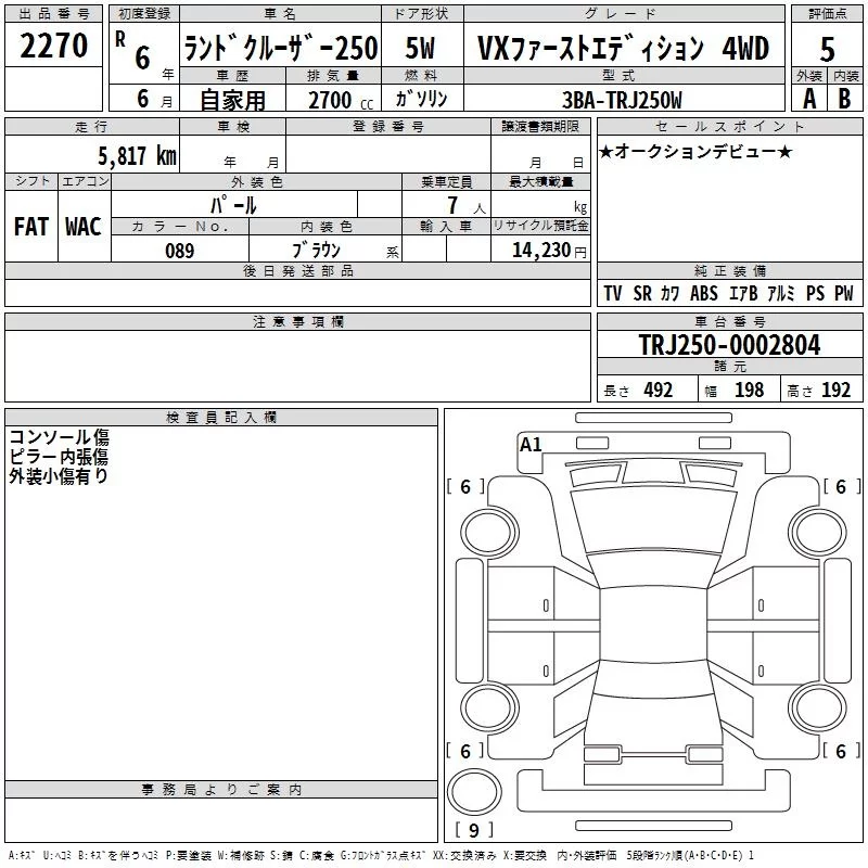Toyota LAND CRUISER с аукциона Японии TAA Kinki лот № 2270