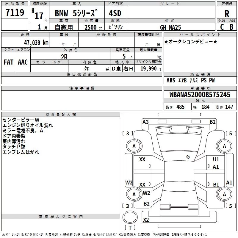 BMW 5-Series с аукциона Японии TAA Kinki лот № 7119