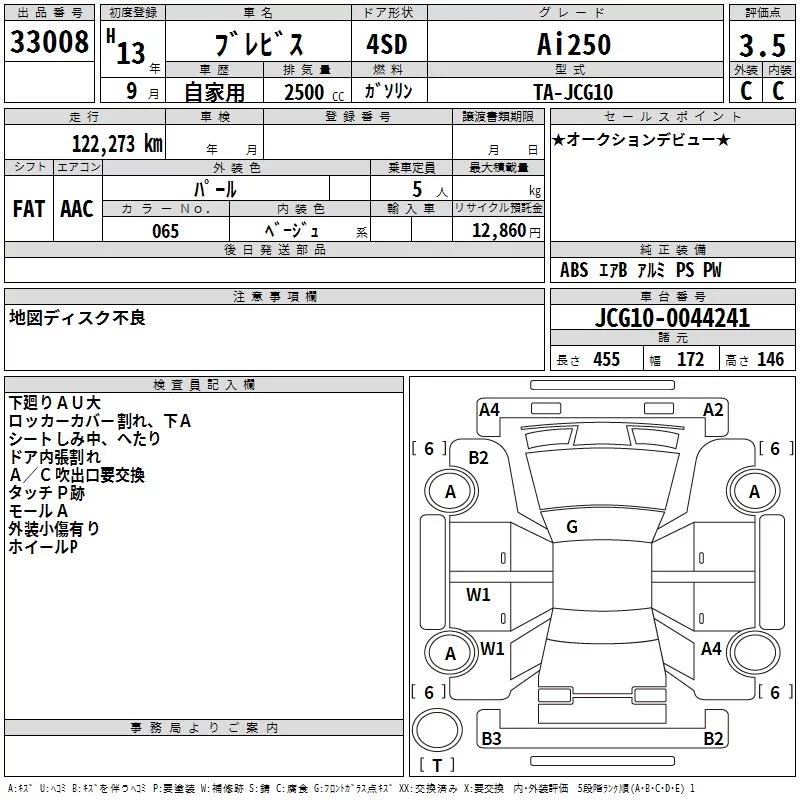 Toyota BREVIS с аукциона Японии TAA Kinki лот № 33008