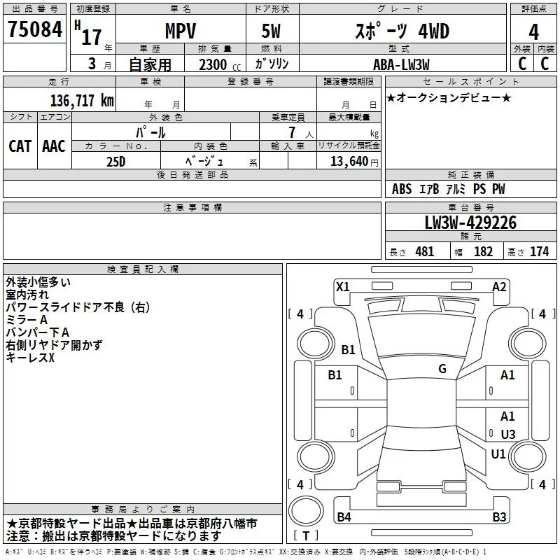 Mazda MPV с аукциона Японии TAA Kinki лот № 75084