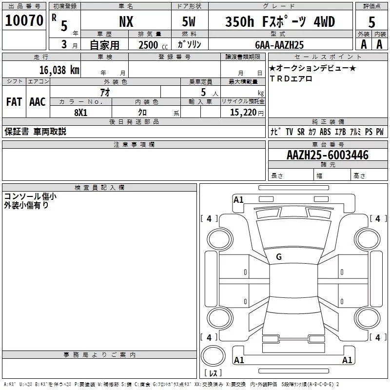 Lexus NX с аукциона Японии TAA Kinki лот № 10070