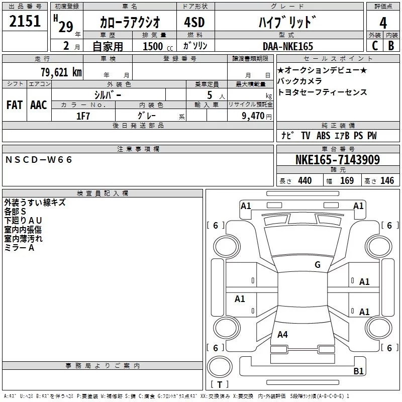 Toyota COROLLA AXIO с аукциона Японии TAA Kinki лот № 2151