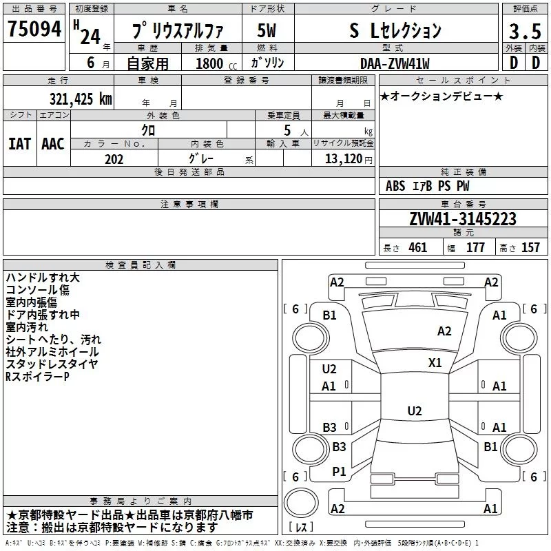 Toyota PRIUS ALPHA с аукциона Японии TAA Kinki лот № 75094