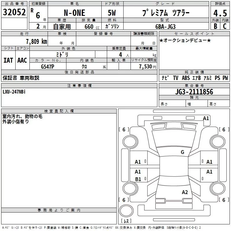 Honda N ONE с аукциона Японии TAA Kinki лот № 32052