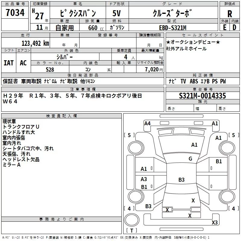 Toyota PIXIS VAN с аукциона Японии TAA Kinki лот № 7034
