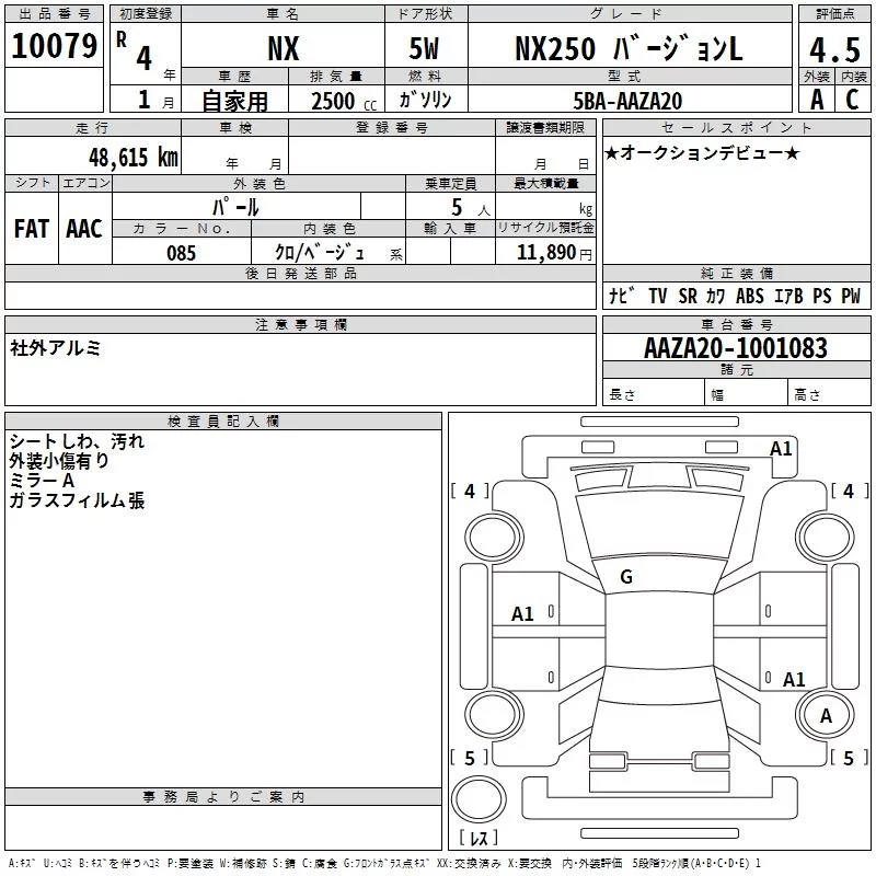 Lexus NX с аукциона Японии TAA Kinki лот № 10079
