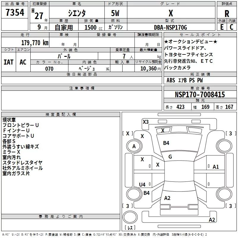 Toyota SIENTA с аукциона Японии TAA Kinki лот № 7354