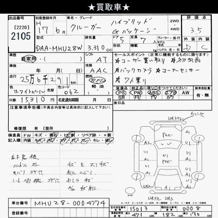 Toyota KLUGER с аукциона Японии JU Saitama лот № 2105