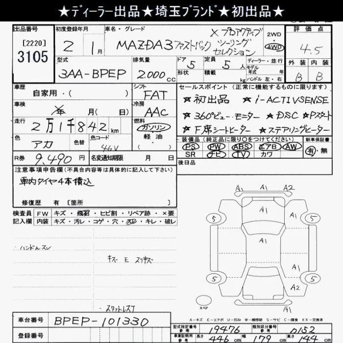 Mazda MAZDA3 с аукциона Японии JU Saitama лот № 3105