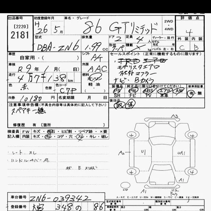 Toyota GT 86 с аукциона Японии JU Saitama лот № 2181