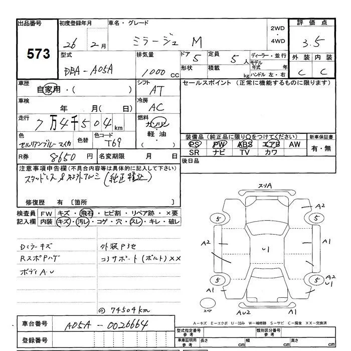 Mitsubishi MIRAGE с аукциона Японии JU Shizuoka лот № 573