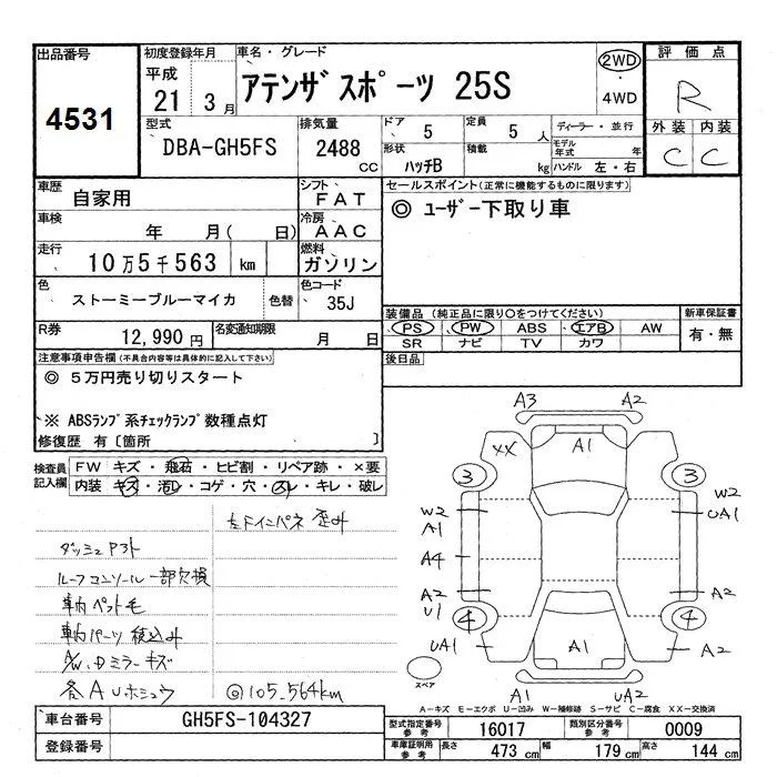 Mazda ATENZA SPORT с аукциона Японии JU Shizuoka лот № 4531