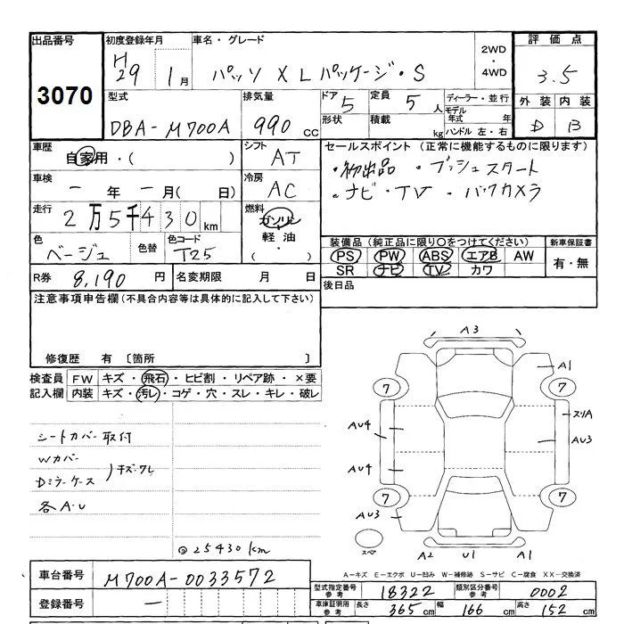 Toyota PASSO с аукциона Японии JU Shizuoka лот № 3070