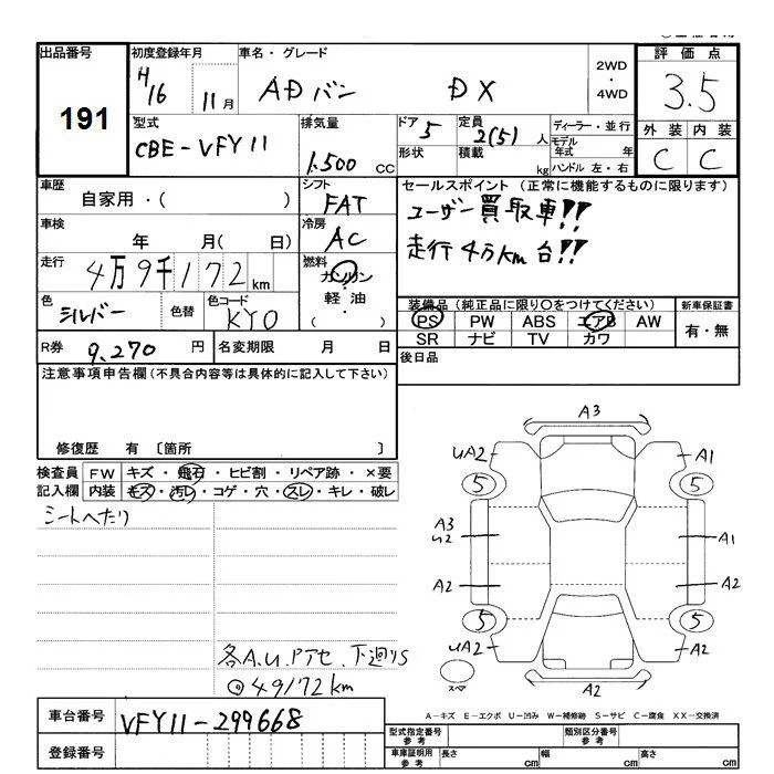 Nissan AD с аукциона Японии JU Shizuoka лот № 191