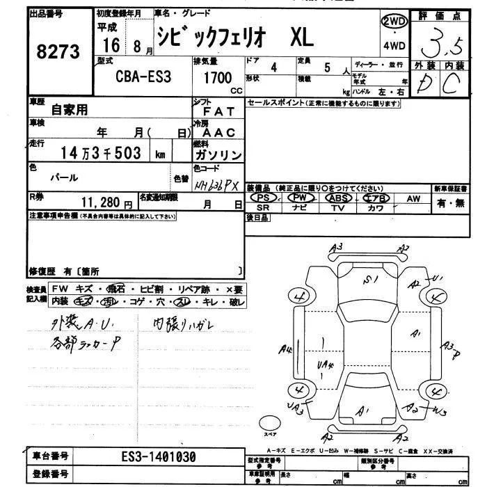 Honda CIVIC с аукциона Японии JU Yamaguchi лот № 8273