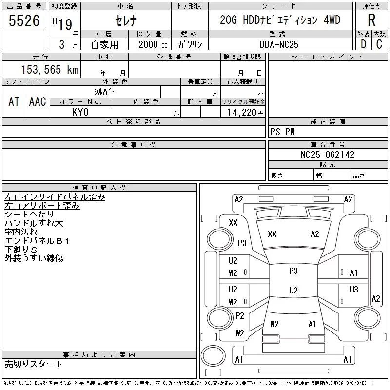 Nissan SERENA с аукциона Японии CAA Tohoku лот № 5526