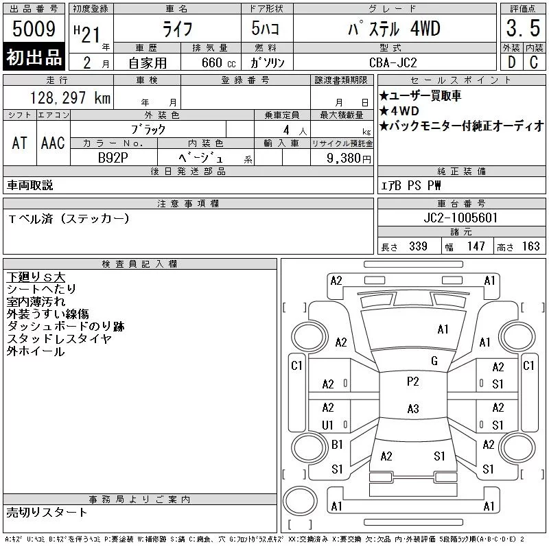 Honda LIFE с аукциона Японии CAA Tohoku лот № 5009